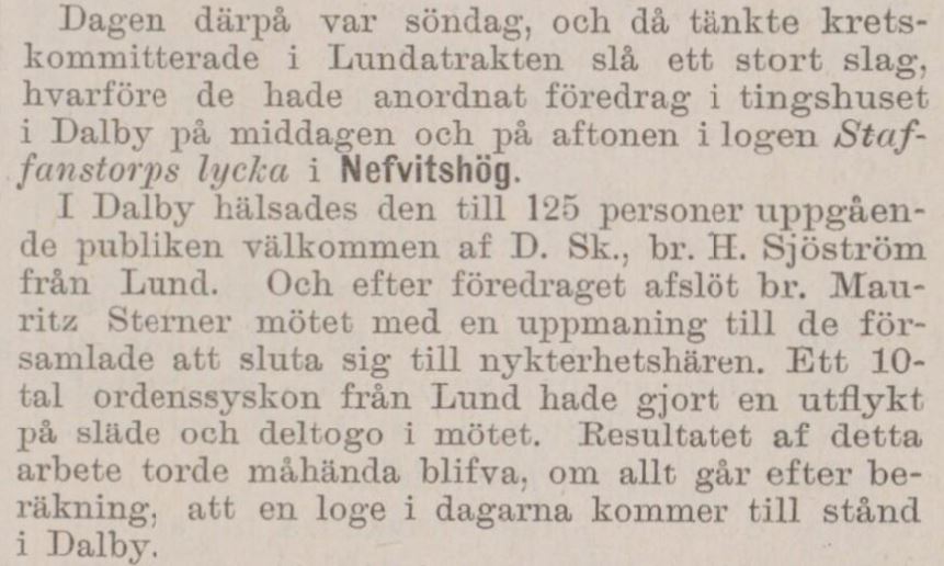 Nykterhetsmöte på Dalby Tingshus. |