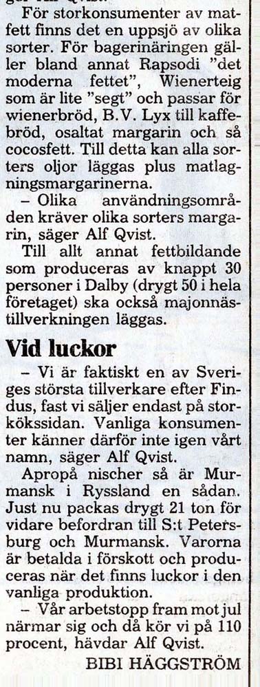 | Dalbys margarinfabrik klarar lågkonjukturerna. |