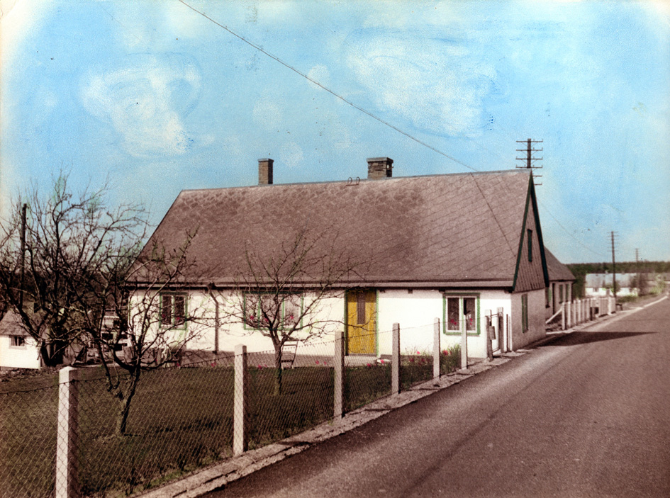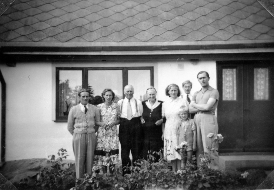 c:a. Knut Svante Sixten Rosdahl, född 1921-01-13 i Grönby. Hustru Göta Karla Hansina, född 1921-07-16 i Dagstorp. Son Kent Olle Jonny, född 1944-04-15 i Lund. Son Alf Ville Tommy, född 1945-06-19 i Lund. Dotter Laila Irene, född 1953-04-21 i Dalby. Dotter Ulla Britta, född 1954-11-20 i Dalby. Dotter Inga-Lena, född 1957-07-19 i Dalby. ![]() Ett foto på familjen Rosdahl på Sandbyvägen från ungefär 1950. Från vänster (enligt dottern Ulla): Morbror Hilding, moster Helga, morfar Karl, mormor Hulda, mor Göta, morbror Karl-Gustav, far Knut. Storebror Kent framför. ![]() Ytterligare ett foto på huset. Dottern Ulla berättar: Jag och mina syskon hade sovrum i rummet ut till vägen på bottenvåningen. Det hände en gång att en förfriskad målare var ute och cyklade en vinterkväll. Han kom snett på cykeln, ramlade in genom fönstret, med cykeln, och hamnade i sängen hos Ulla och hennes sykon. Ulla berättar vidare om trafiken på Sandbyvägen: Det var inte mycket trafik. Det mesta var häst och vagn. Nunnorna från Rögle Kloster kom förbi med sin Grålle. De skulle in till Dalby och handla. |